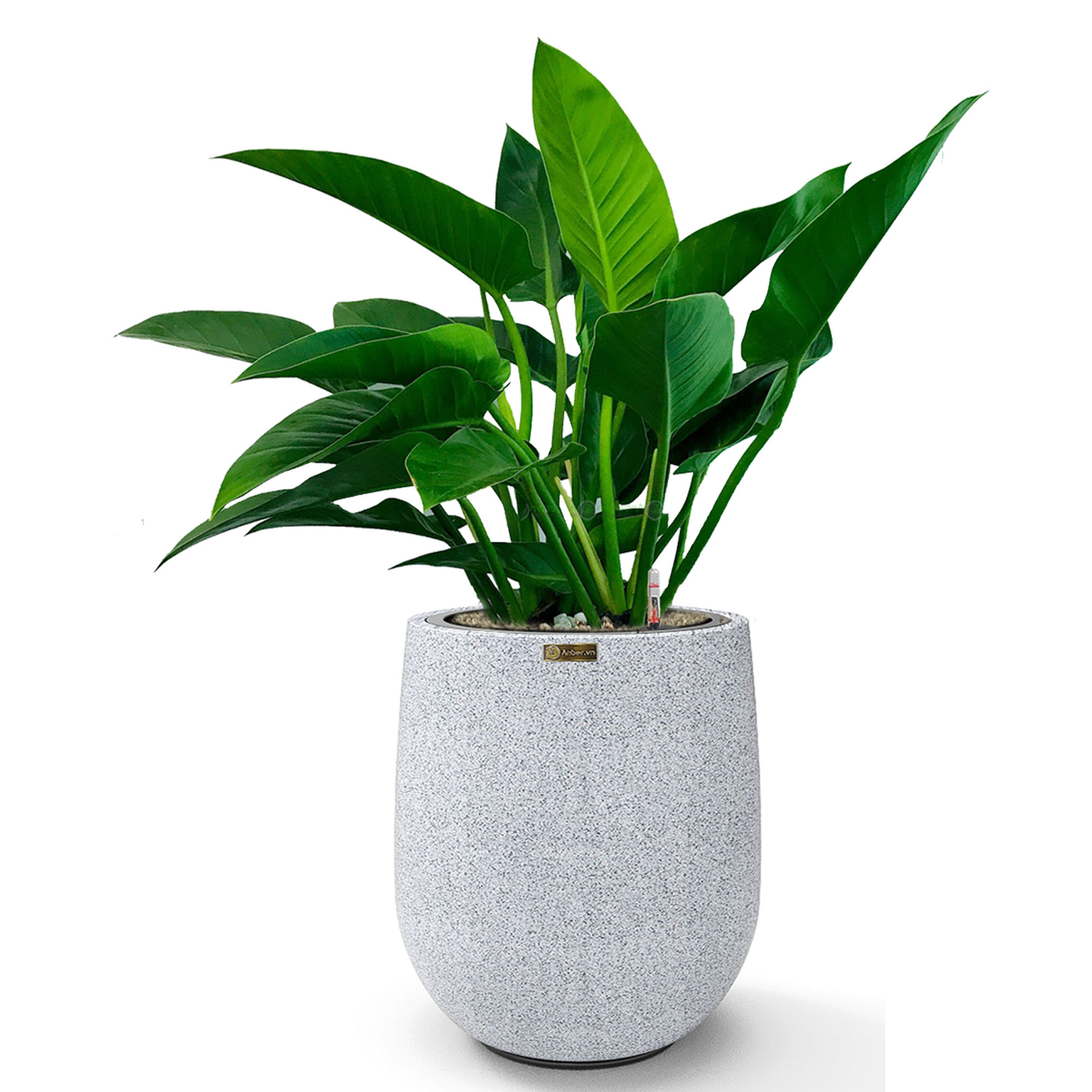 Cây Đế Vương Xanh + Chậu composite Anber APOLLO (Màu giả đá Smartline) + Tự tưới AWS