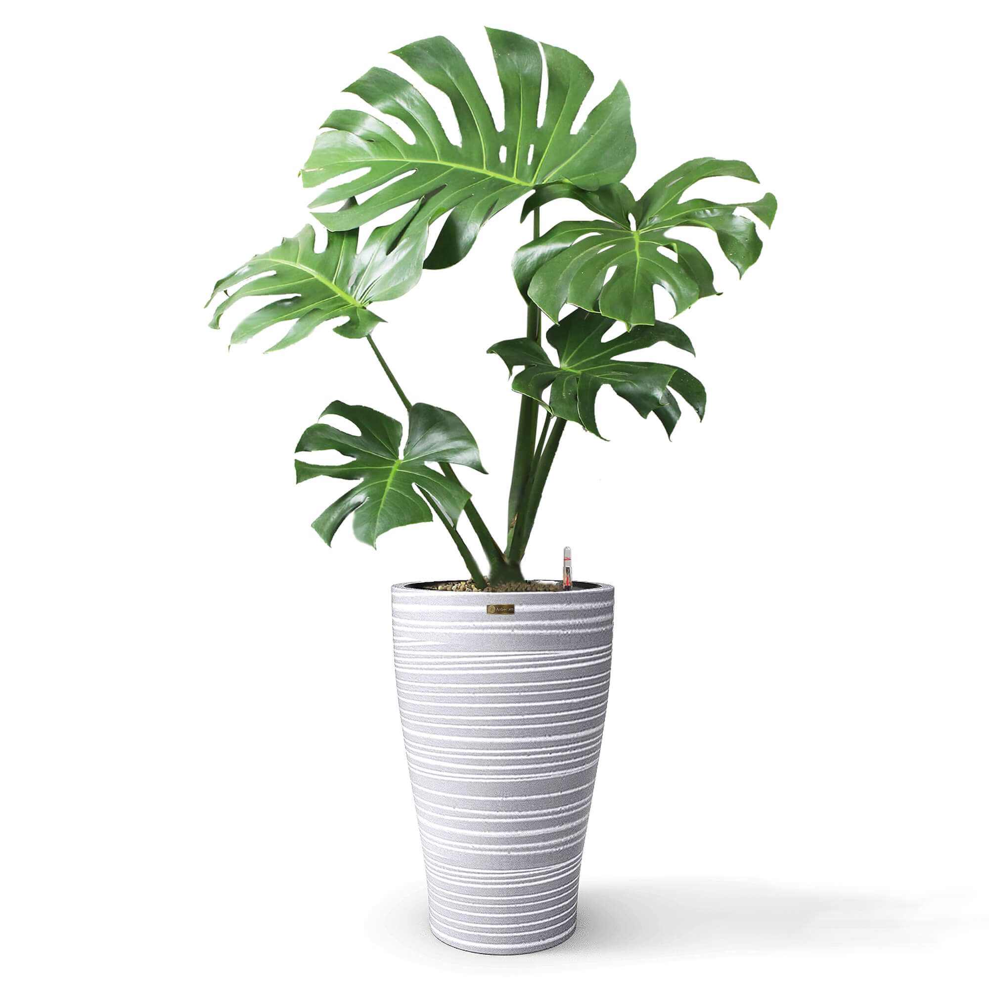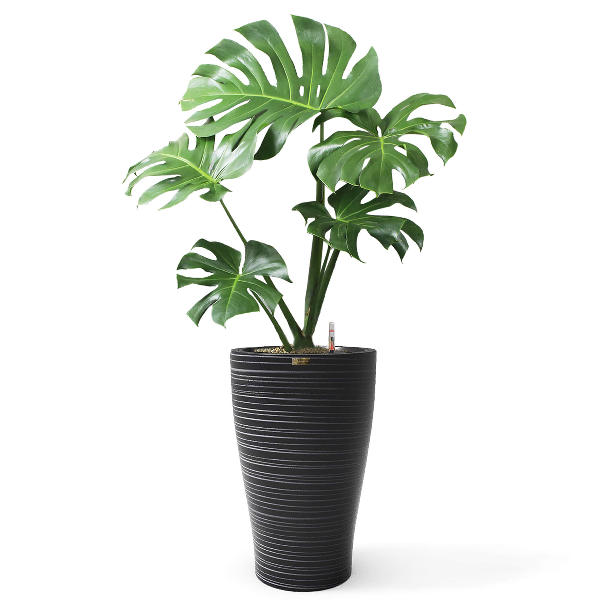 Cây Monstera + Chậu composite Anber HERA + Tự tưới AWS (Màu đá Wood Rings)