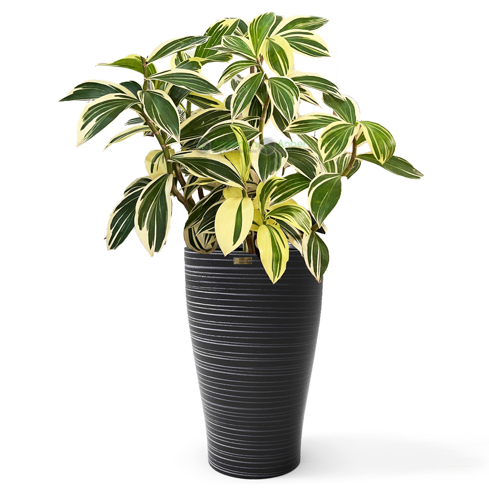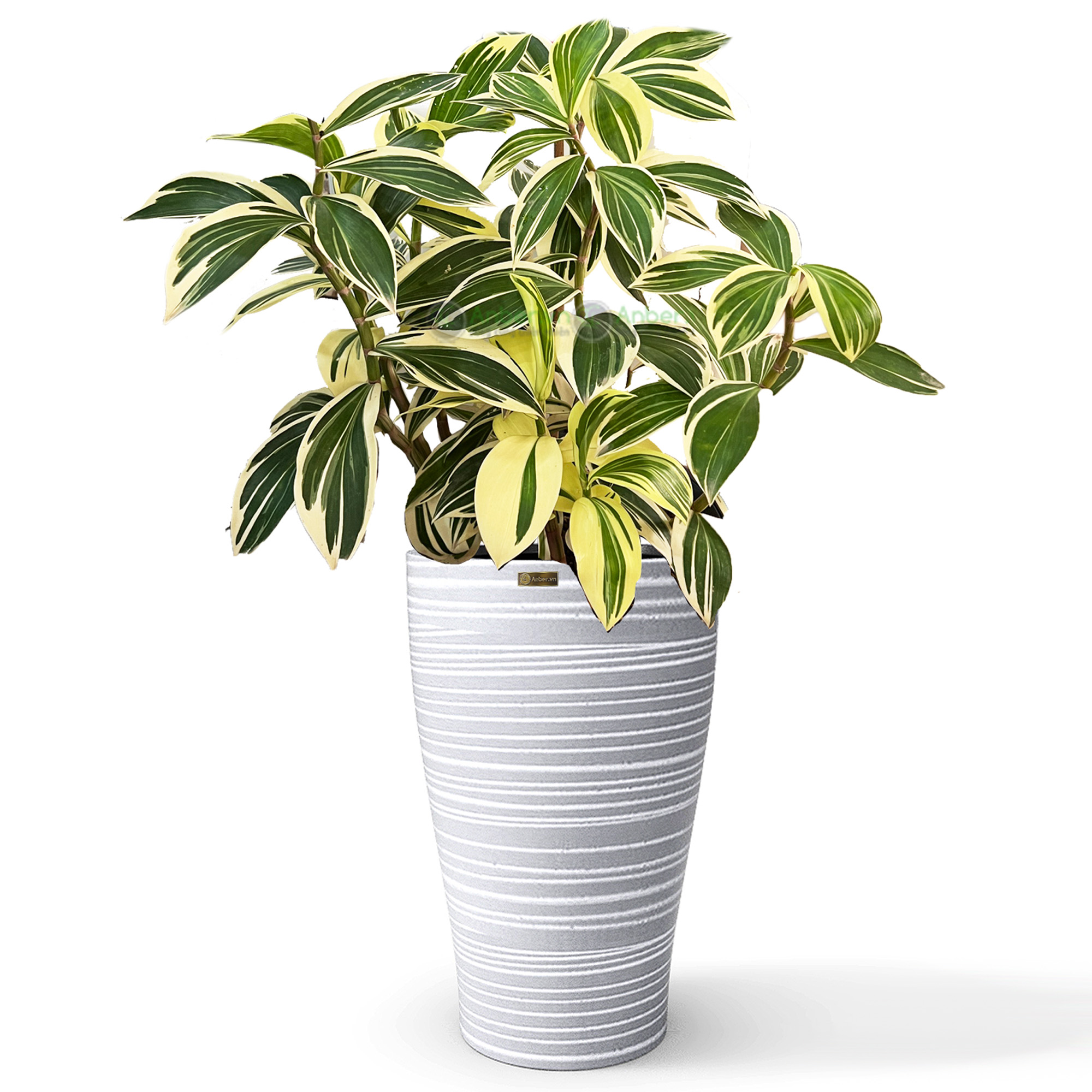 Cây nhập - Kiểng lá Cheilocostus speciosus Chong Chóng Var + Chậu composite Anber HERA + Tự tưới AWS (Màu đá Wood Rings)