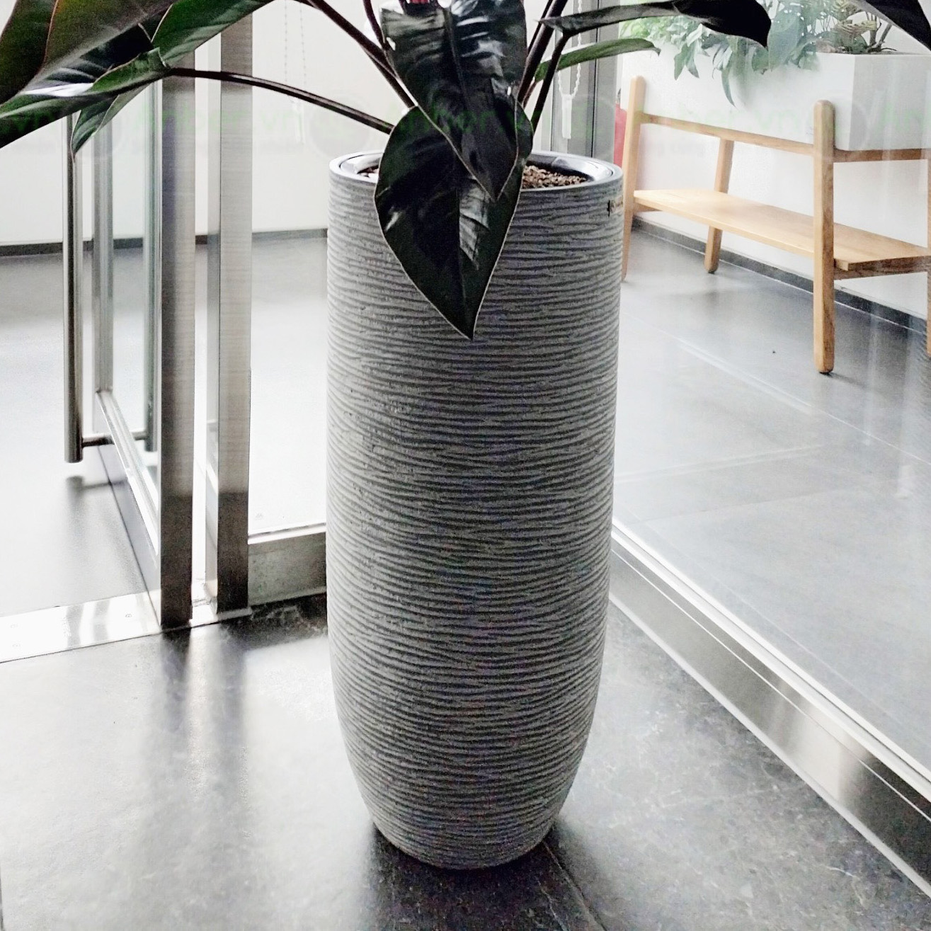 Cây nhập - Kiểng lá Cheilocostus speciosus Chong Chóng Var + Chậu composite OLYMPUS + Tự tưới AWS (Màu đá Cliffs)