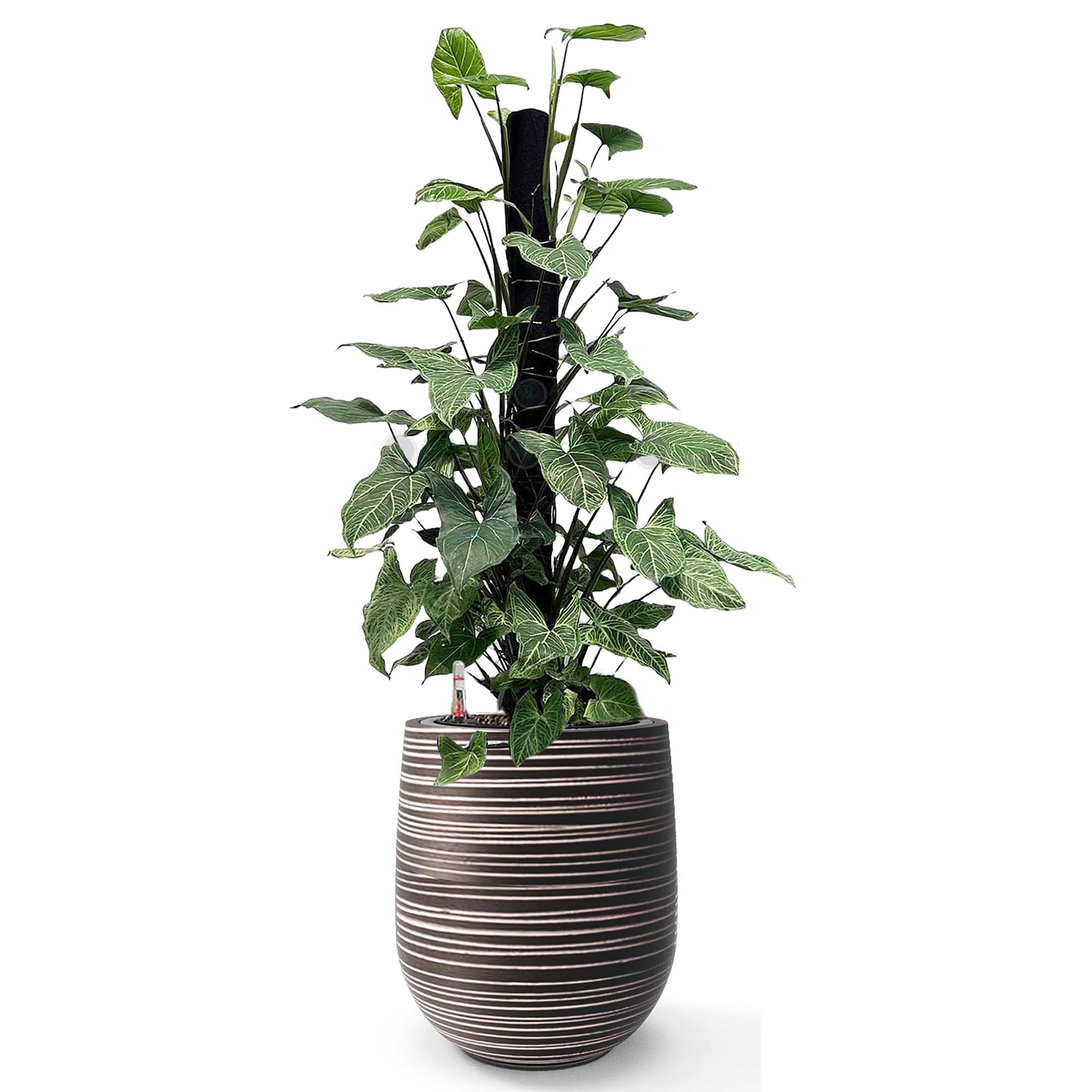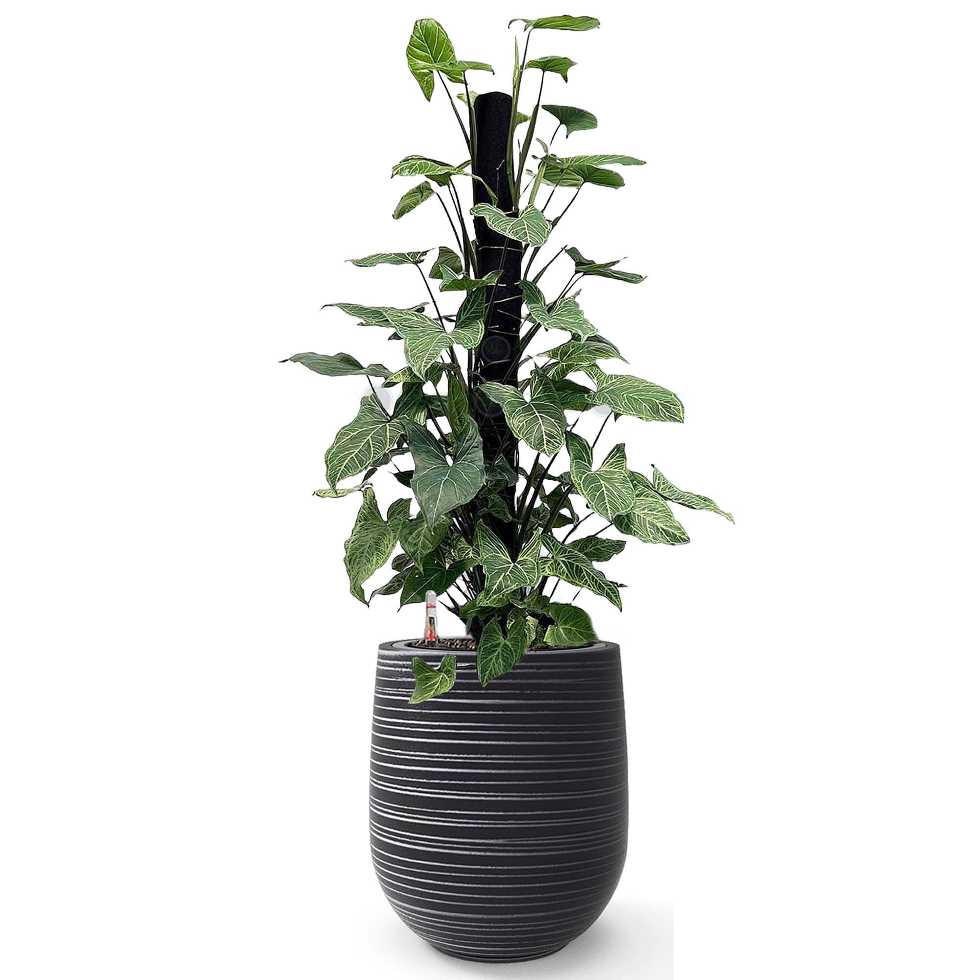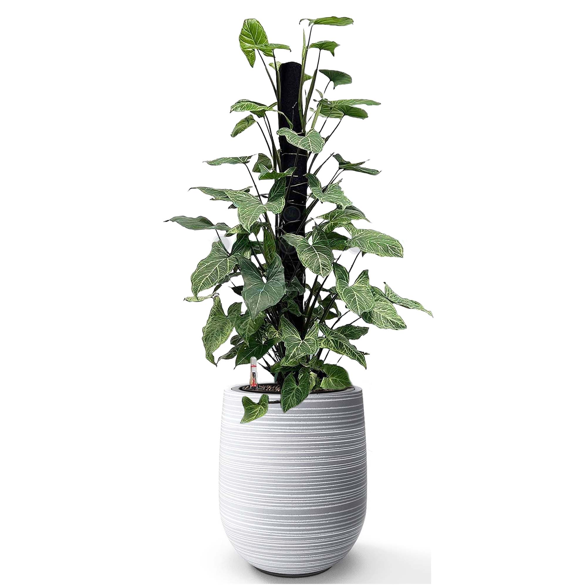 Cây Trầu Bà Lá Bạc + Chậu composite Anber APOLLO (Màu giả đá Wood Rings) + Tự tưới AWS