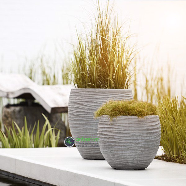 Hình thực tế chậu composite Anber TITAN Ripple Marks - D28xH30cm