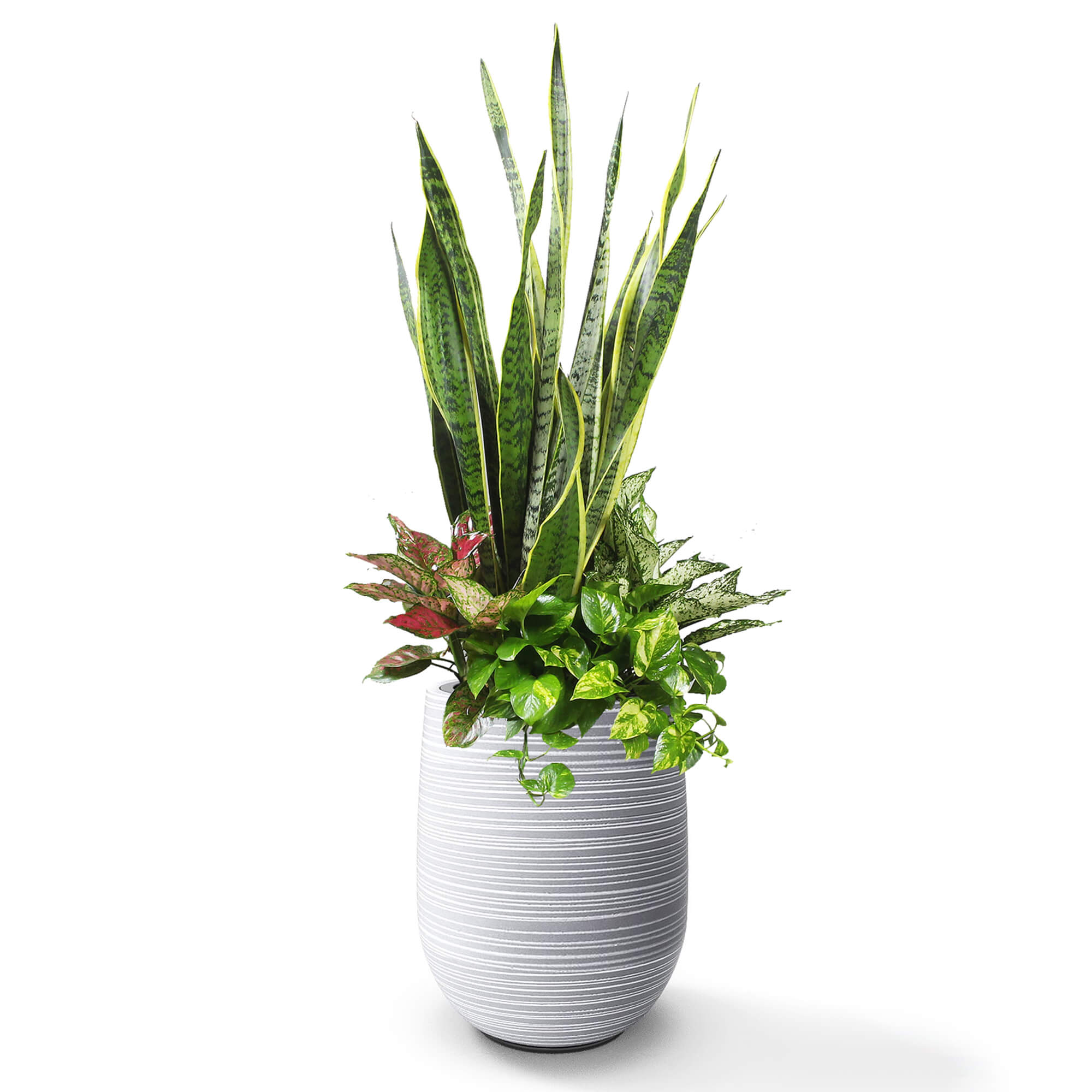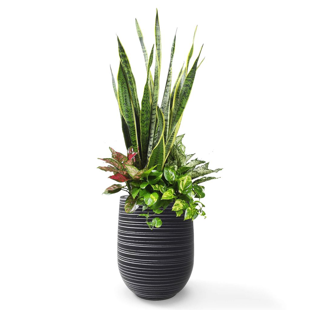 Mix cây Lưỡi Hổ Phú Quý Ngọc Ngân Trầu bà + Chậu composite tự tưới AWS – Anber Garden (Since 2015)